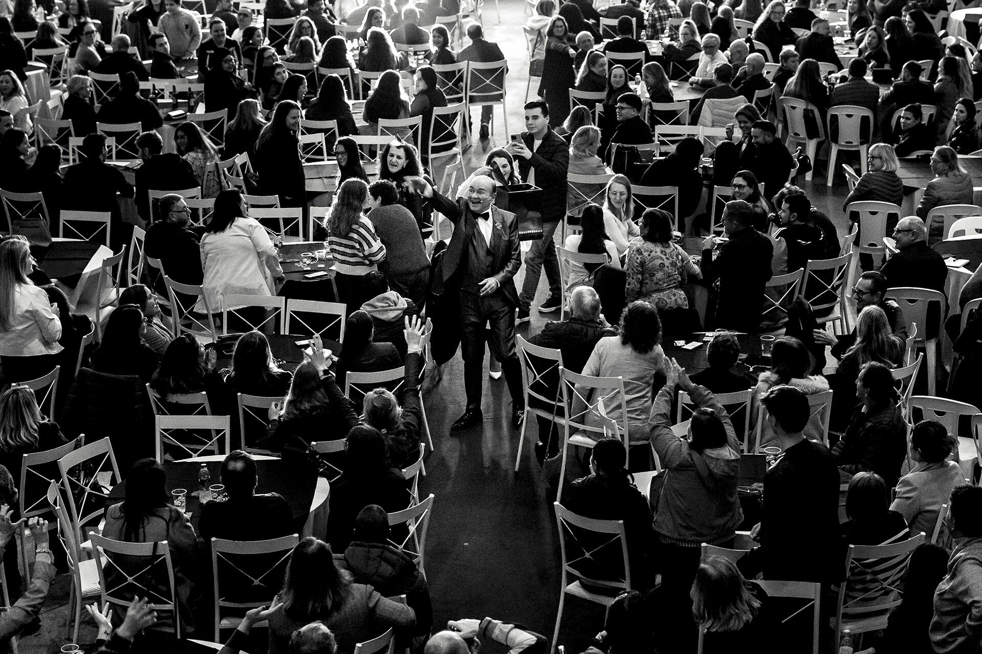 Ao longo dos eventos, busquei construir imagens que representassem não apenas o profissional, mas também a essência do seu trabalho. A forma como ele se conecta com as pessoas, a atenção do público, os momentos de silêncio e impacto — tudo isso faz parte de uma narrativa visual forte e estratégica.