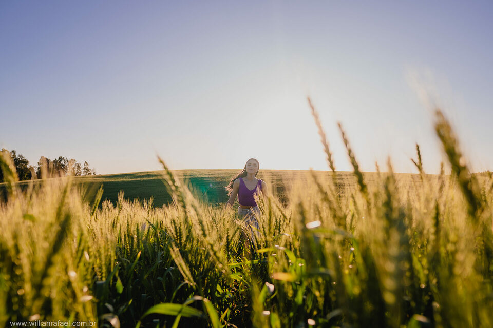 A Beleza do Campo: O campo proporcionou um cenário naturalmente deslumbrante para as fotos de quinze anos. Com a luz suave do fim de tarde, as fotos refletem a serenidade e o encanto deste momento mágico.