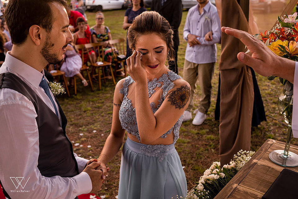 casando ao ar livre emocionante no fim de tarde, casamento da Agatha e do Gustavo em São Jerônimo / RS