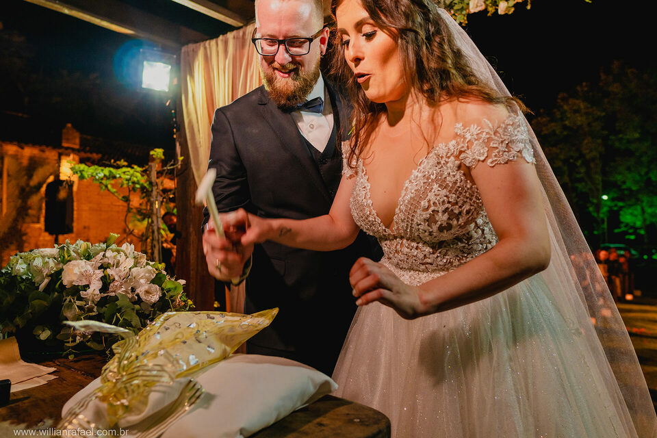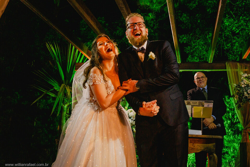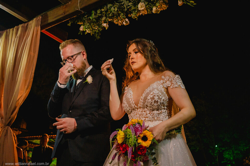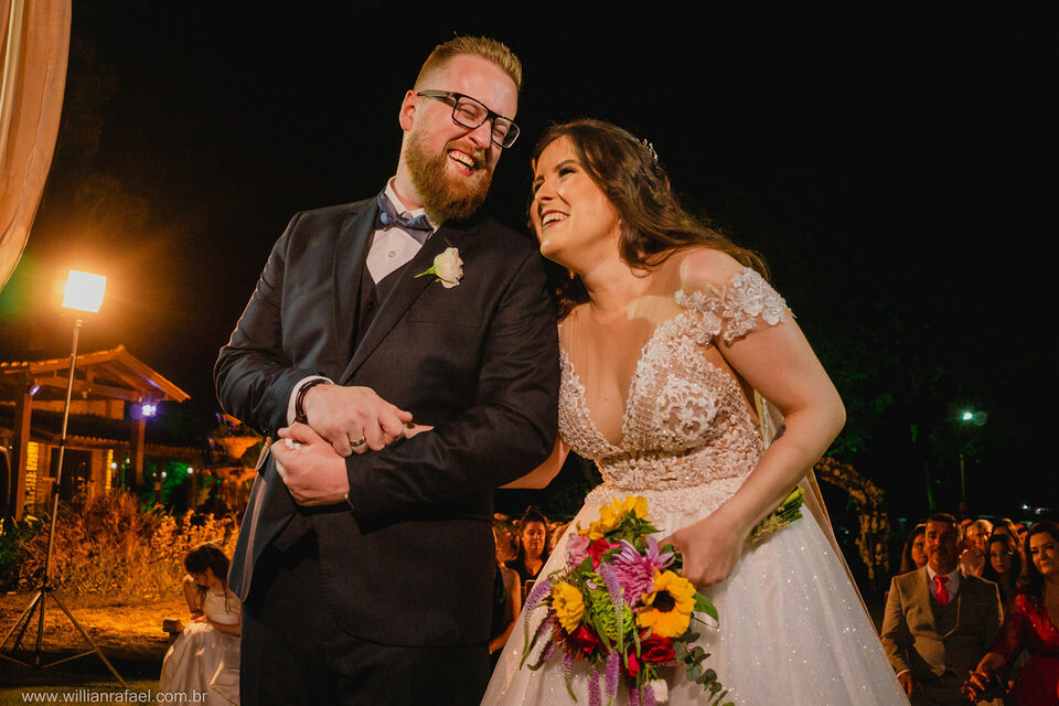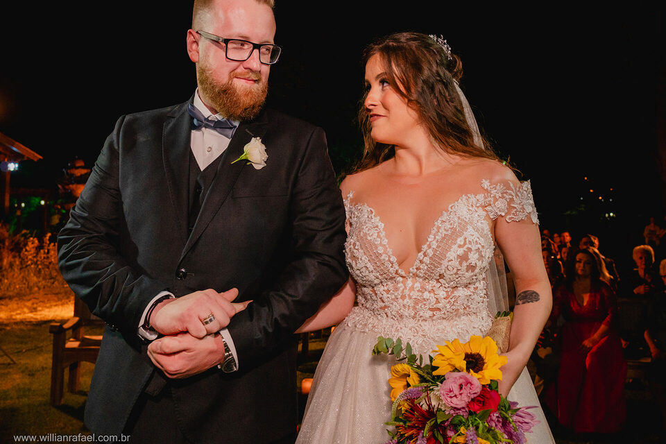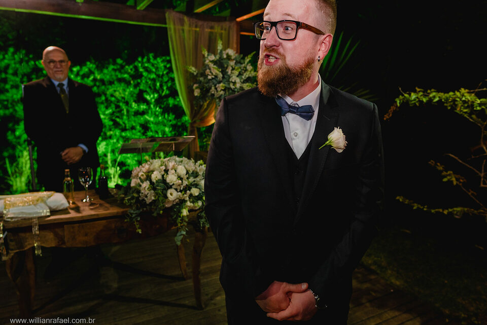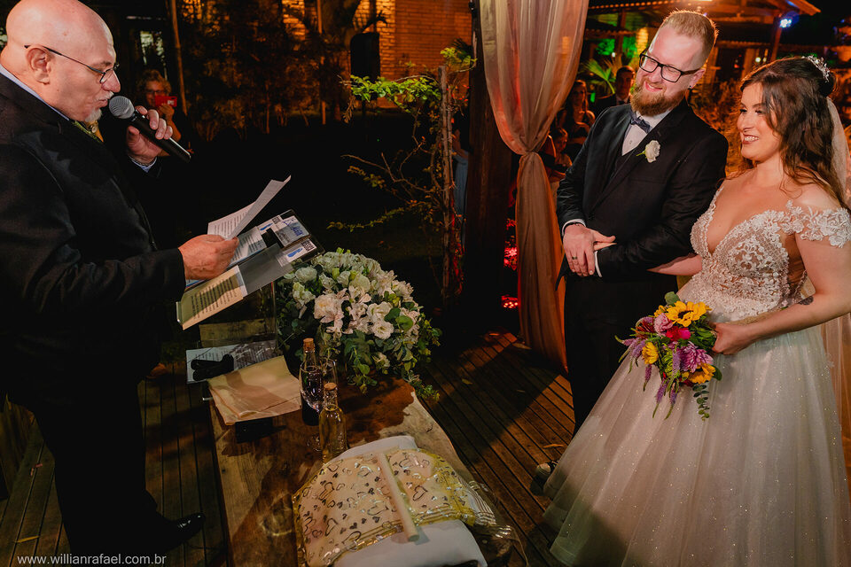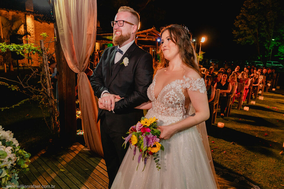 Casaram no início da noite no Jardim Babylônia em Viamão, e sério, casar no Jardim Babylônia em viamão é de tirar o fôlego um lugar incrível repleto de energias boas, a noiva se arrumou no mesmo lugar do casamento, e com o seu vestido de noiva minimalista desceu até o altar onde o noivo a esperava repleto de emoção. Já era noite quando a noiva entrou, e o Guilherme todo emocionado a recebeu e a cerimônia de casamento foi linda repleta de energias boas! Gui Jéssica gratidão por esse carinho imenso de vocês desejo tudo de bom para vcs e até breve!
