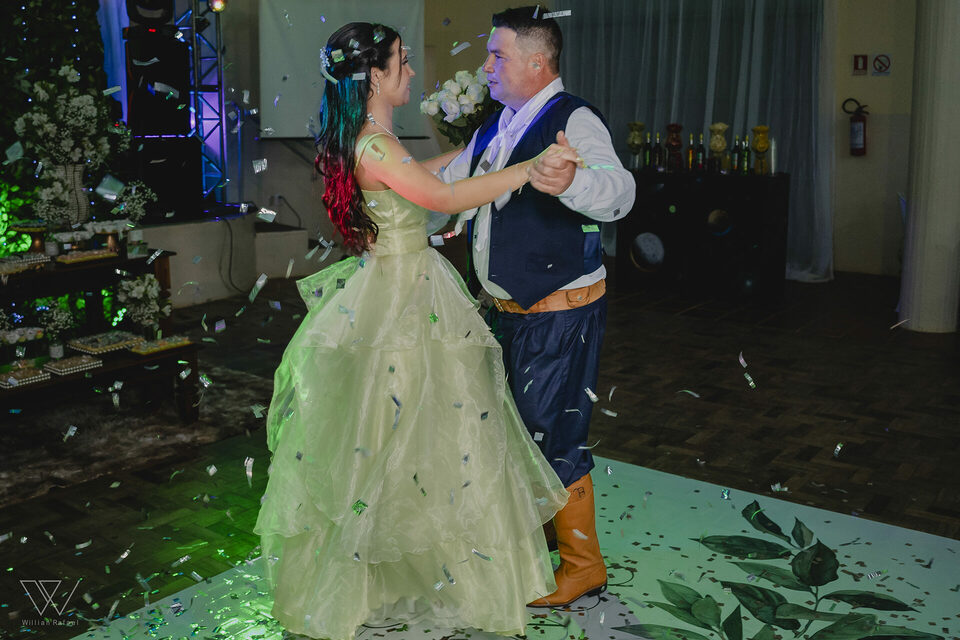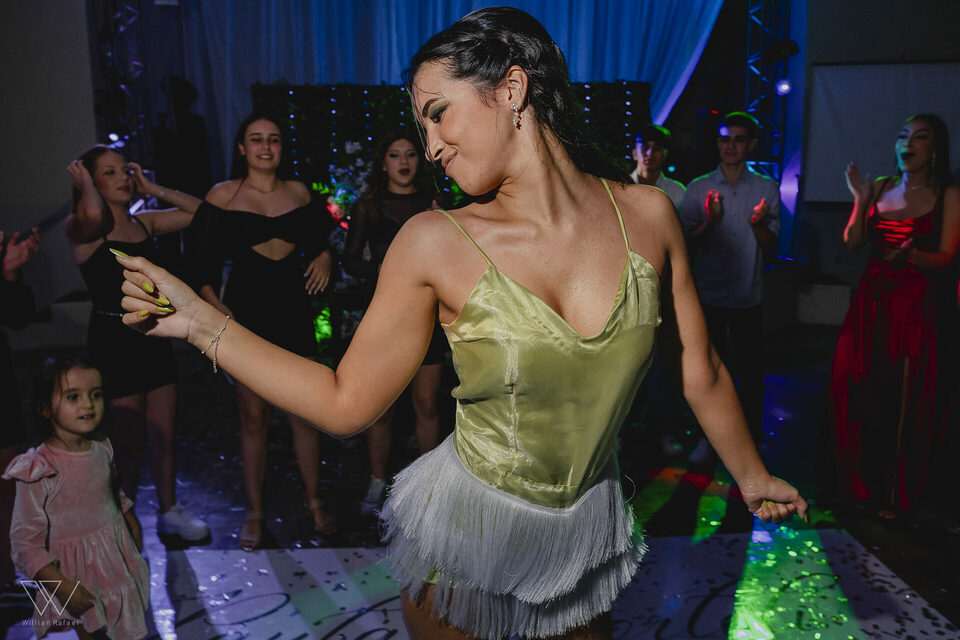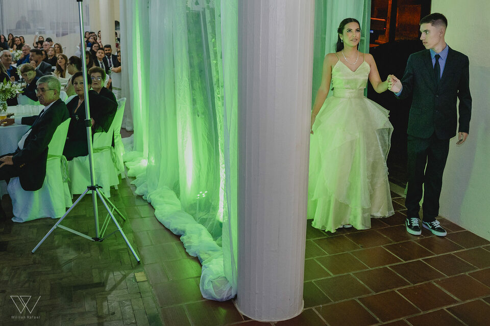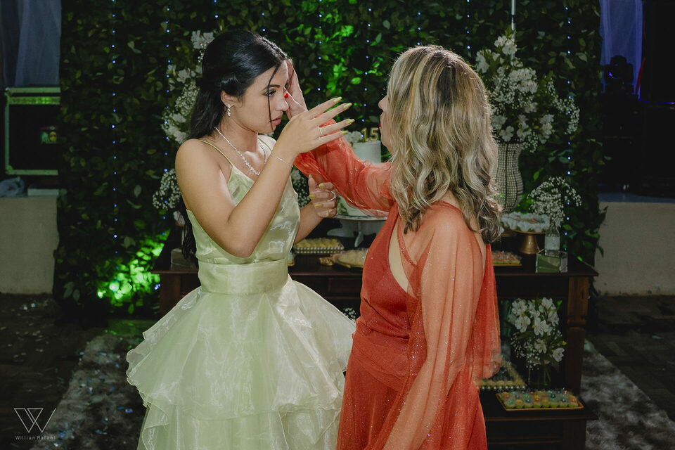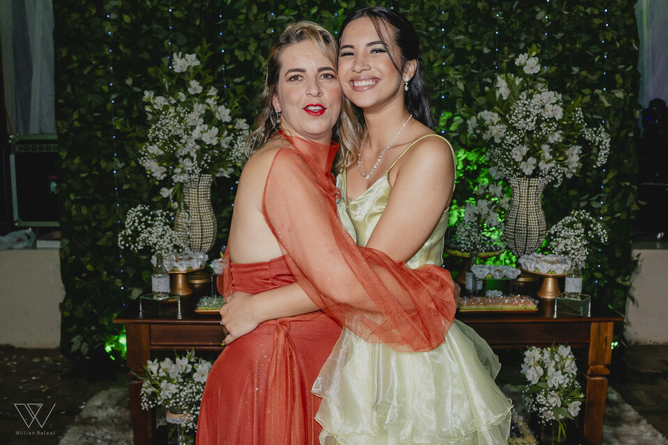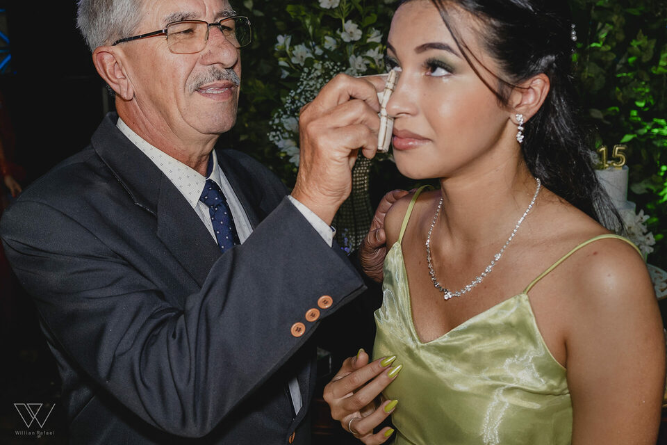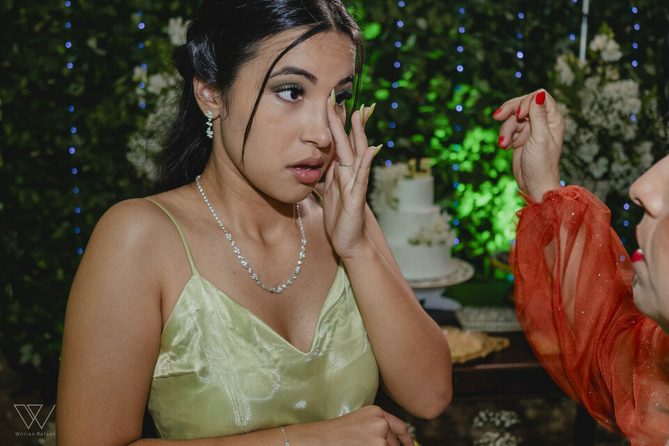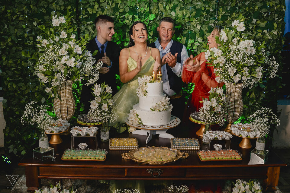 Paula estava deslumbrante em um vestido de debutante verde, o vestido, foi confeccionado por pela avó da debutante. Este vestido que foi produzido pelas mãos da avó debutante não apenas realçava sua beleza, mas também simbolizava o carinho e a tradição familiar, certamente que o vestido que foi feito pela avó da debutante tornou a ocasião ainda mais especial.