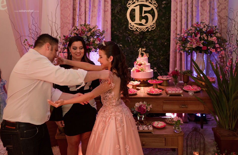Imagina só ter a responsabilidade de contar uma história em apenas um dia, aquela história que muitas vezes a família sonha durante anos. Nós temos em mãos um grande poder o poder em congelar o tempo. Esse poder é forte e poderoso, pois com ele daqui a 10, 20 anos ainda com nossas fotos podemos arrancar sorrisos de felicidade e lágrimas de saudade! Somos magos do tempo, e o tempo passa e com ele algumas histórias ficam eternizadas foi assim com a Juju, uma moça quieta meiga e com um sorriso lindo, conheci ela a muito tempo atrás, pois fotografei a comunhão dessa lindona, sim faz tempo 5 anos atrás! Nossa o tempo voa né, e passou e enfim chegou a tão esperada festa dos quinze dela, e foi simplesmente DEMAIS. Entre sorrisos e lágrimas a emoção tomou conta da festa do início ao fim em todos até de mim.