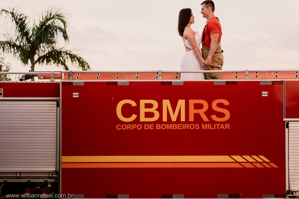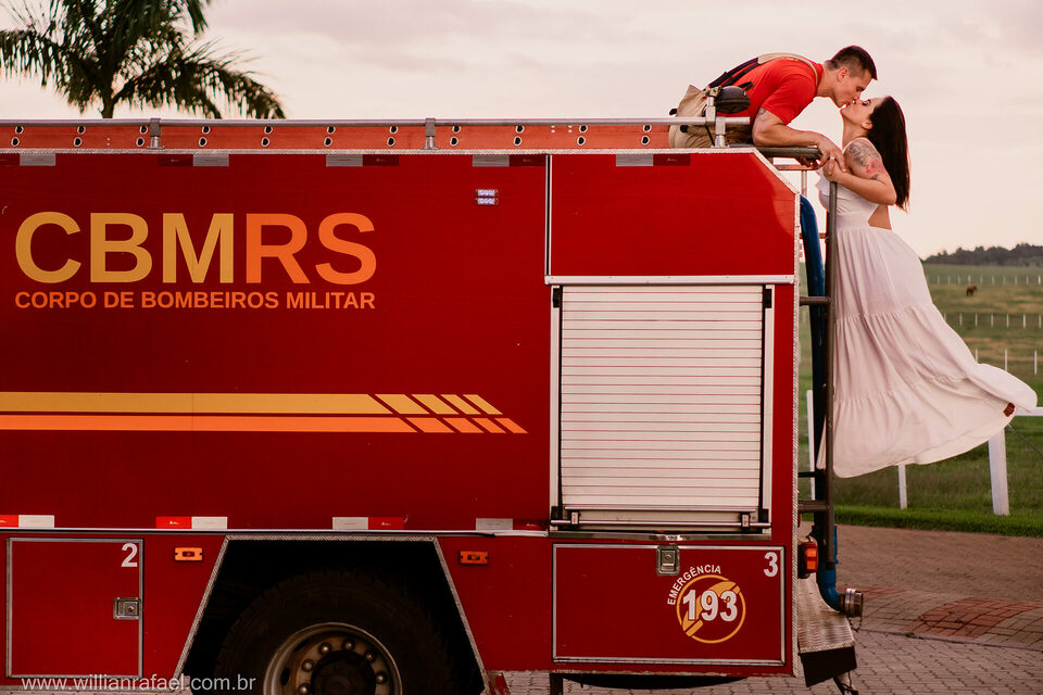 Pré wedding com o caminhão de bombeiros - Amanda e Gustavo - Portão RS
