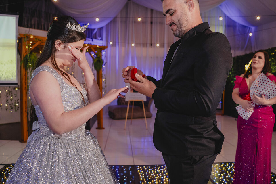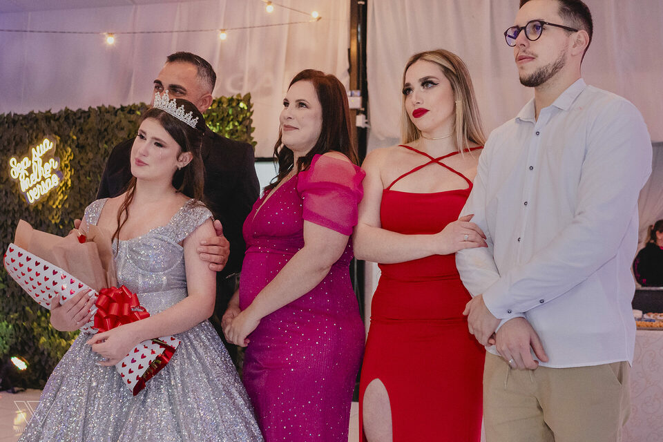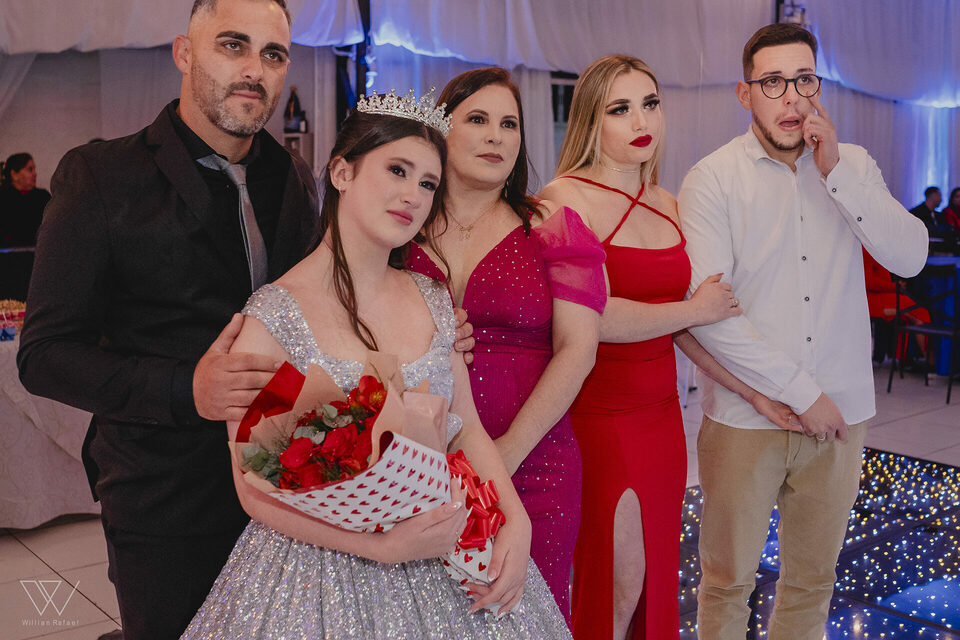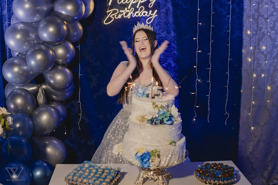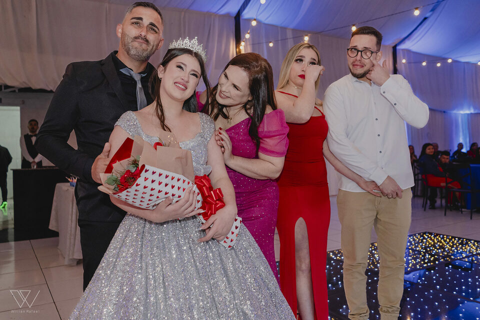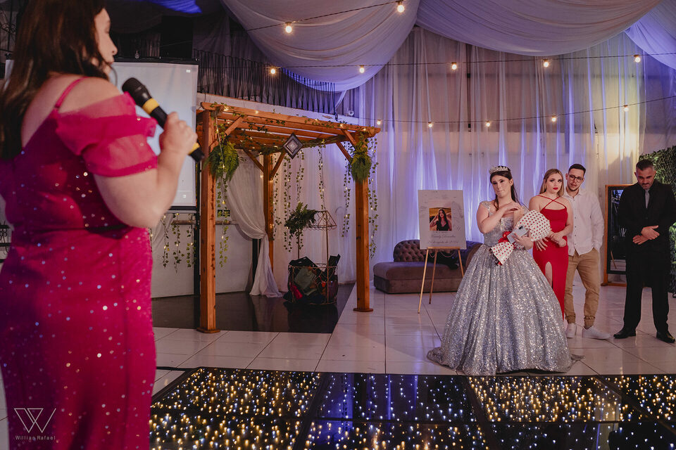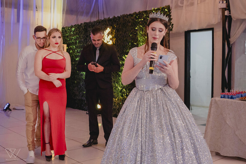Em uma noite mágica no Arroz de Festa, Kaka celebrou seus quinze anos com uma festa repleta de emoção e beleza. Com um vestido deslumbrante na cor prata e uma coroa que destacava sua elegância, Kaka brilhou em cada instante dessa noite especial.