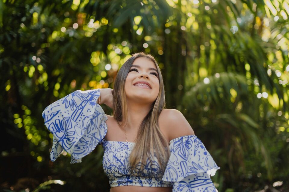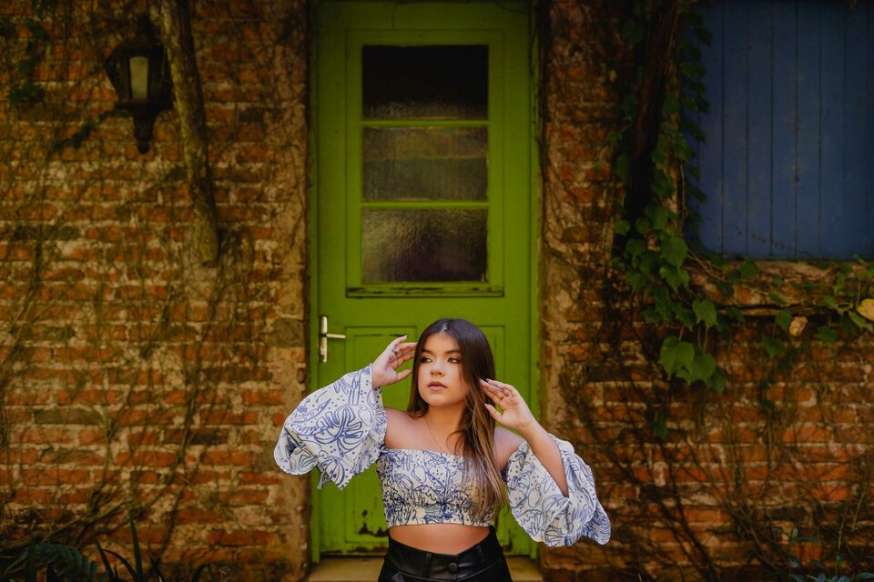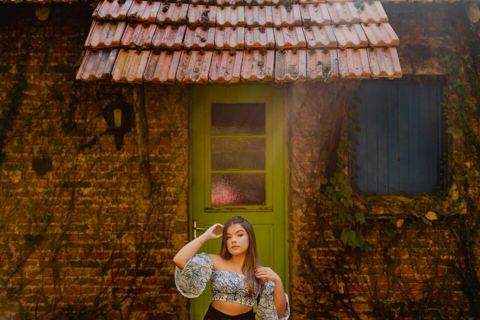 Em um dia de calor, com o céu azul e o canto dos pássaros completando a paisagem, a Manu irradiava felicidade. Cada sorriso, cada gesto e cada detalhe do ensaio refletiam o quanto ela estava curtindo viver o sonho do seu ensaio de debutante.