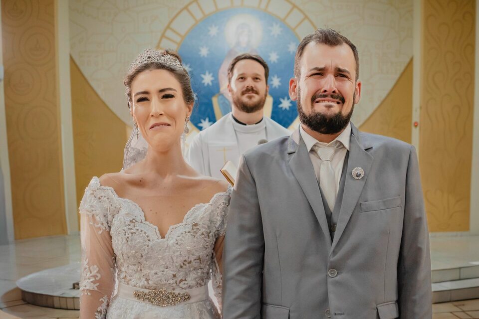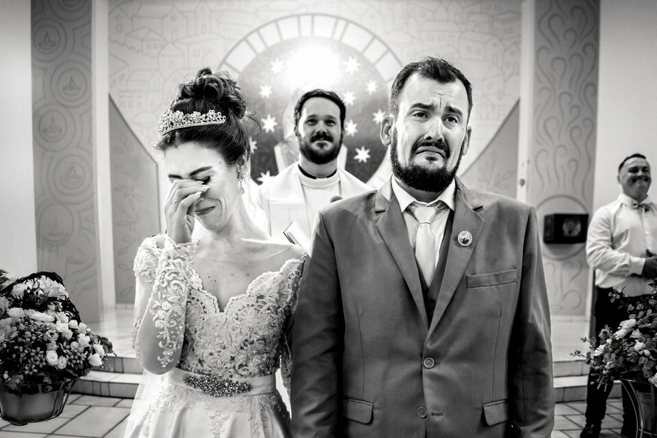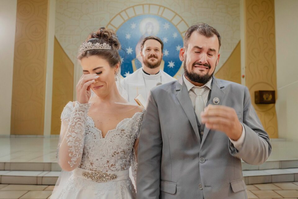A noiva chegou à igreja em um magnífico Ford Galaxie, simbolizando a elegância e o estilo desse dia especial. Luis, emocionado, não conteve as lágrimas ao ver Nai caminhar pelo corredor, iluminando o espaço com sua presença. O amor entre eles ficou evidente a cada olhar e gesto, criando um ambiente mágico na celebração.