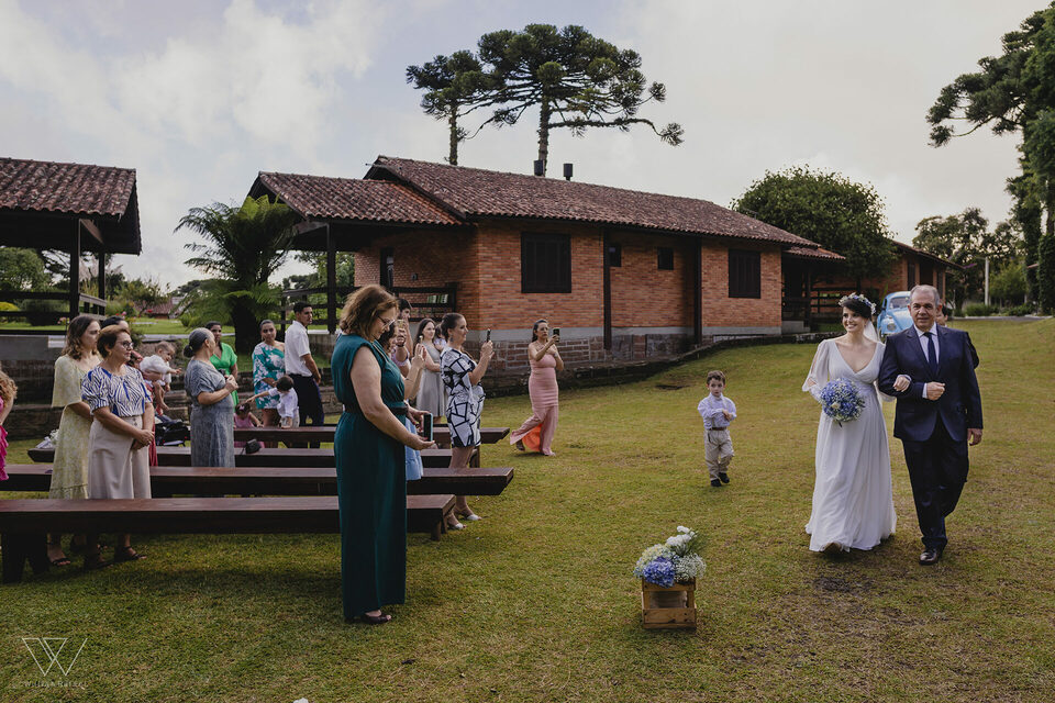 O cenário idílico da Serra Gaúcha proporcionou o ambiente perfeito para uma cerimônia de casamento ao ar livre cheia de romance e magia. Quem aqui não sonha em casar com o sol se pondo no horizonte? O céu pintou-se em tons de laranja e rosa, embelezando ainda mais o casamento especial de Juliana e Rodrigo.