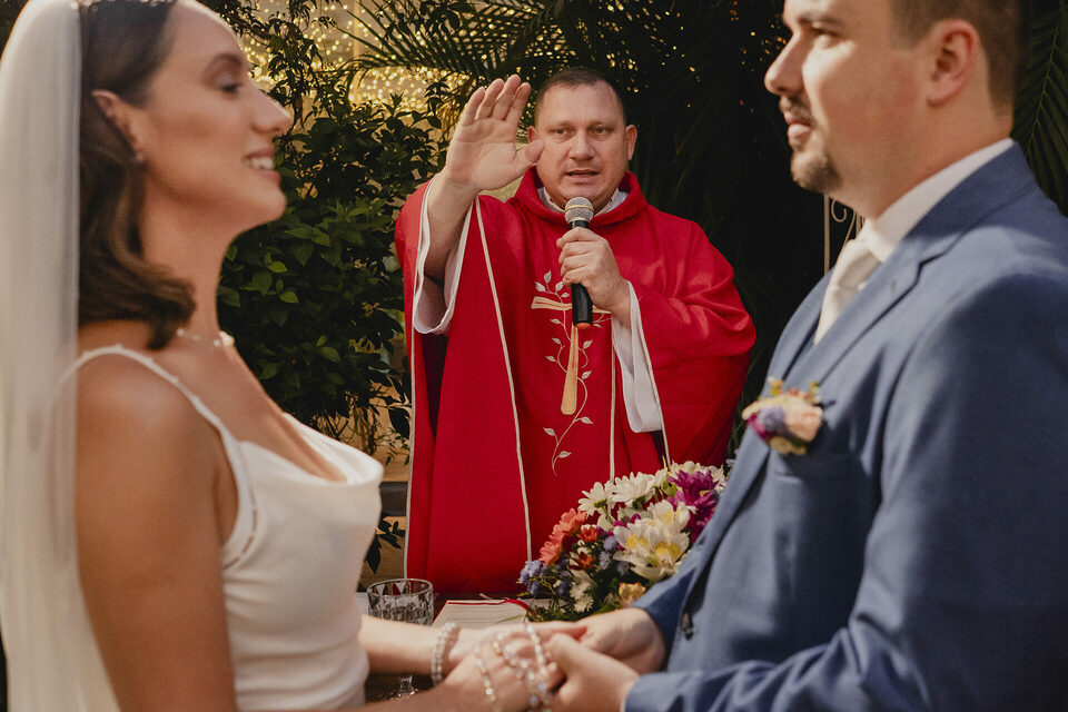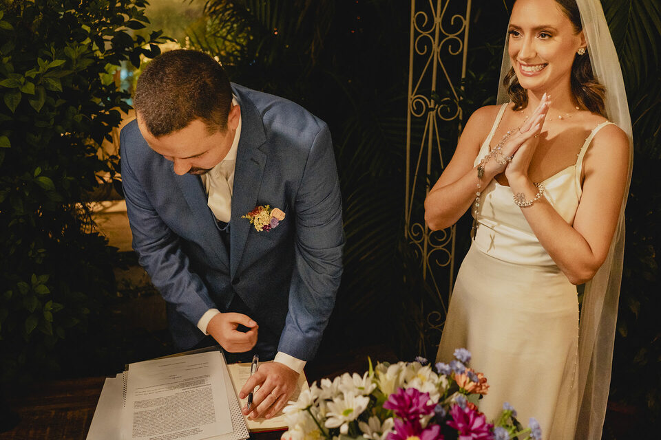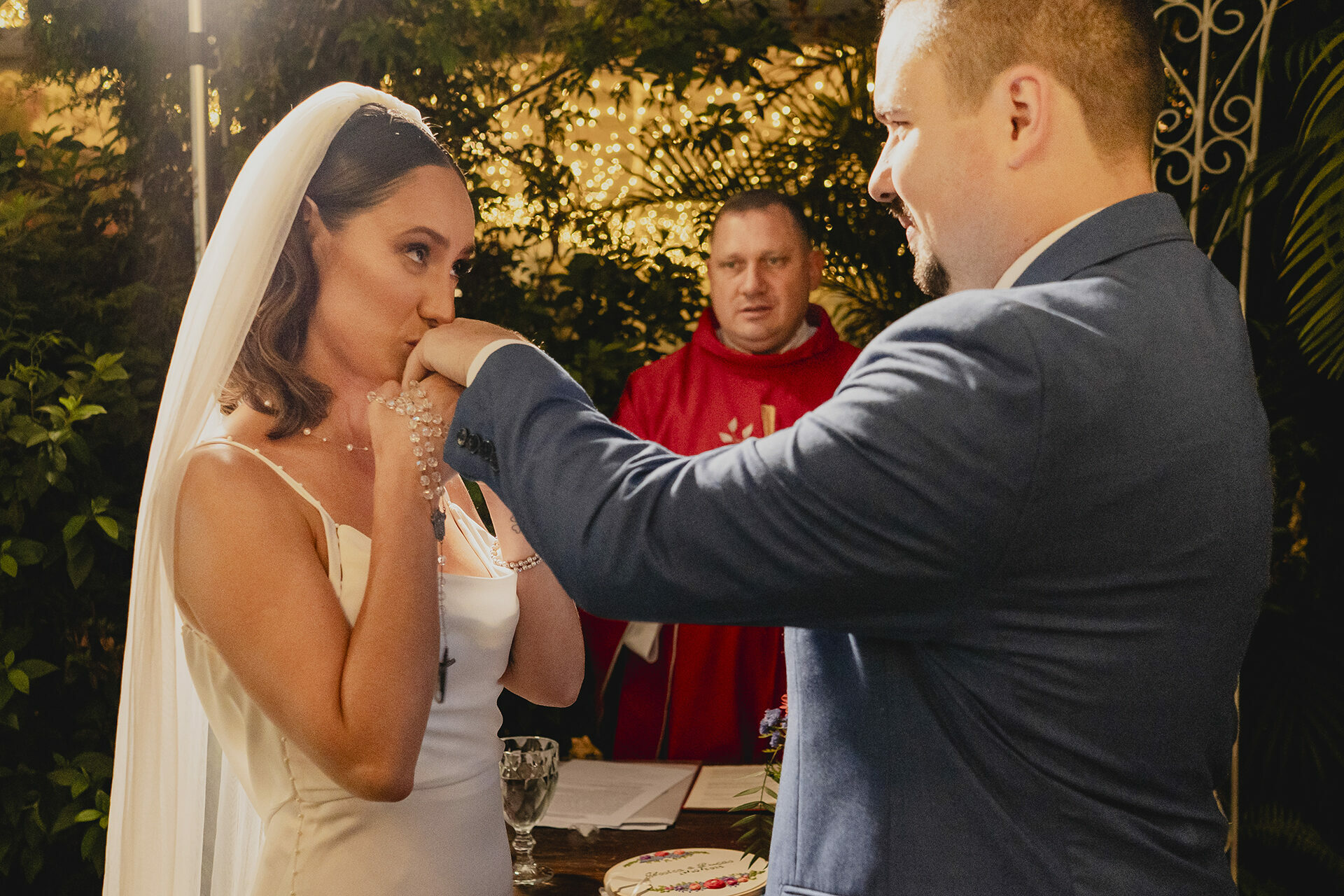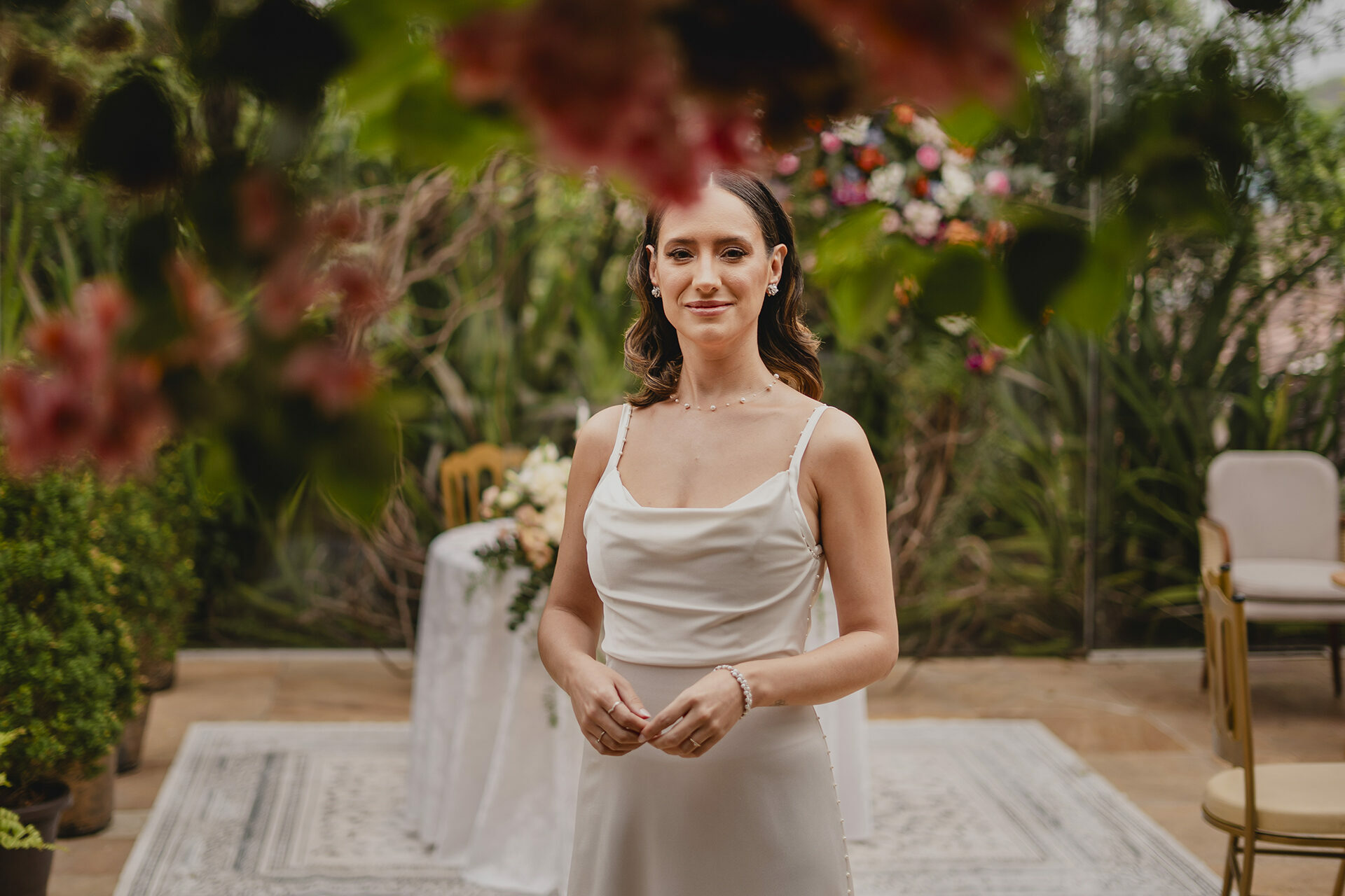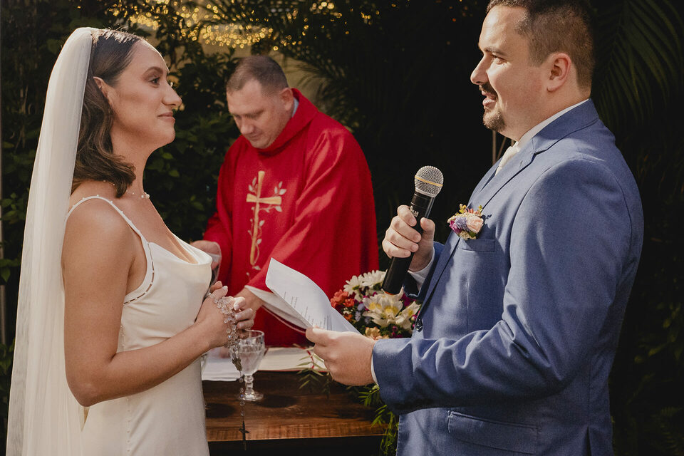 A cerimônia seguiu leve, cheia de carinho e conexão. A atmosfera do Gui Olivier, com seu jardim acolhedor e sua arquitetura aconchegante, trouxe um cenário ideal para quem busca um casamento ao ar livre em Porto Alegre com uma estética natural e elegante.