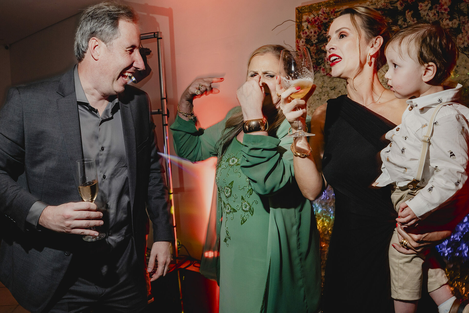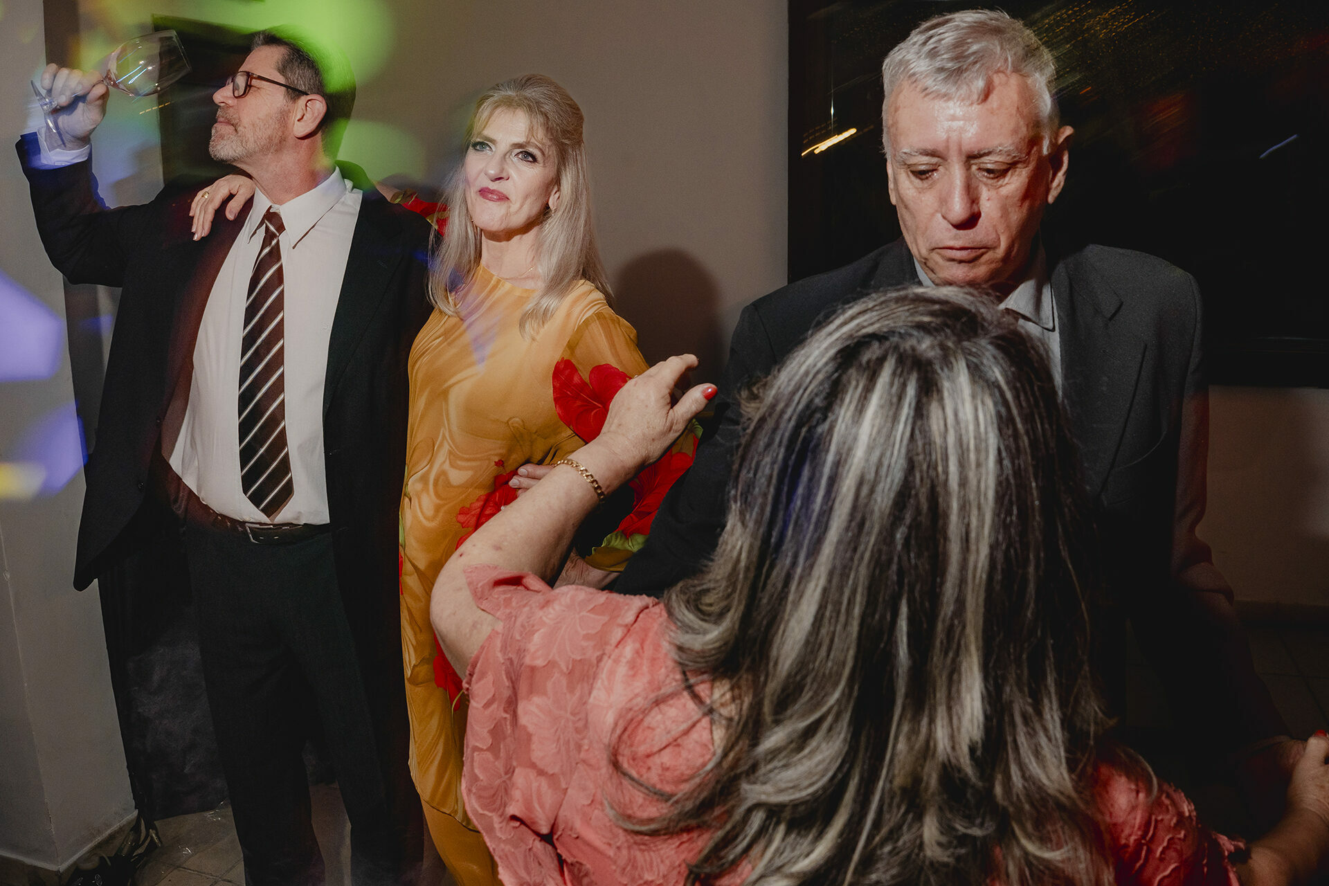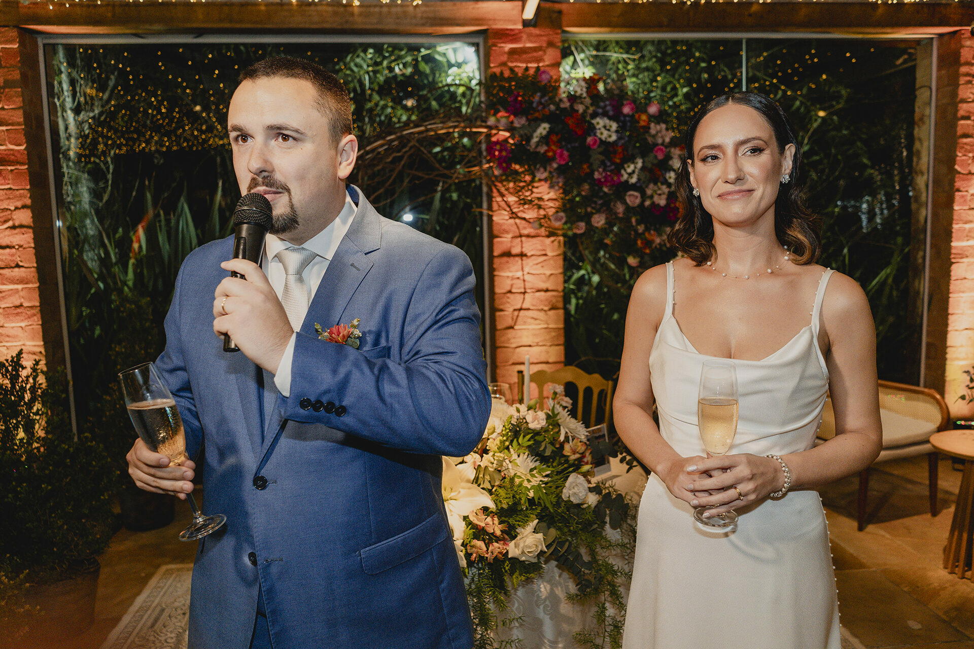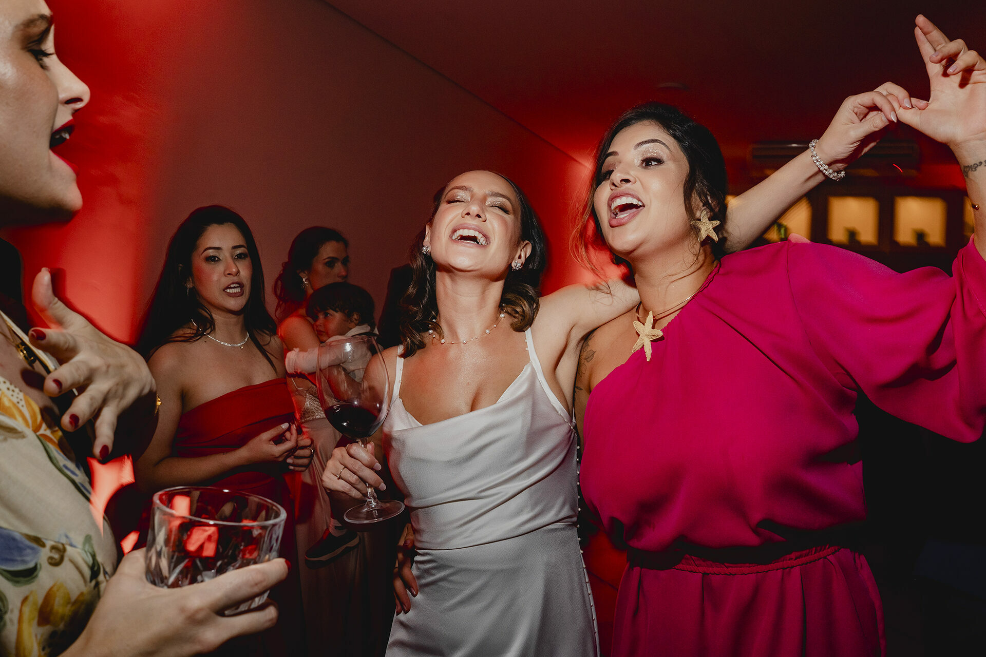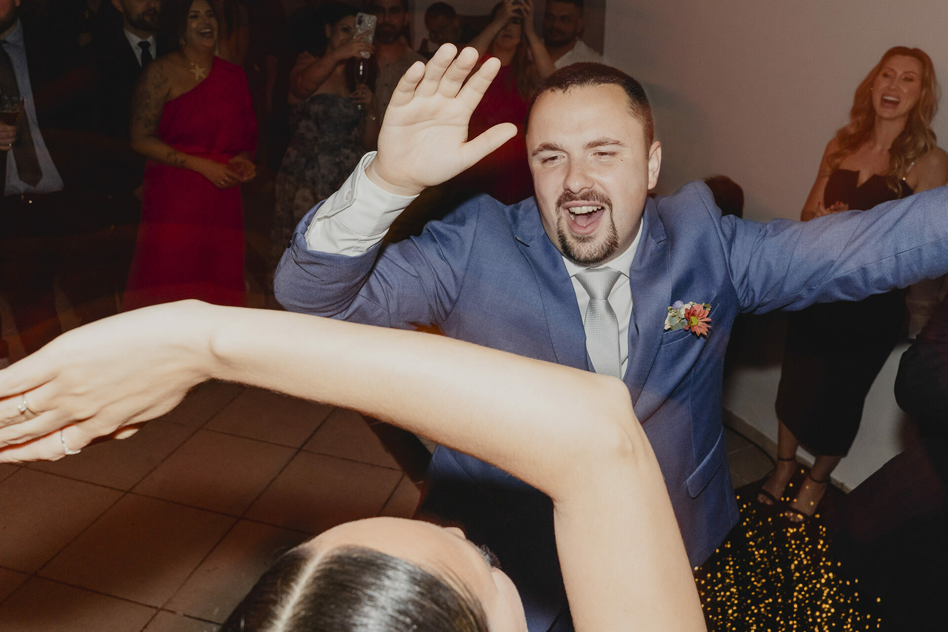 A festa continuou noite adentro, marcada por abraços, risadas e aquela energia boa de quem celebra ao lado de pessoas realmente importantes. Um casamento assim, íntimo e cheio de verdade, reforça o poder que a fotografia espontânea de casamento tem em eternizar histórias reais.