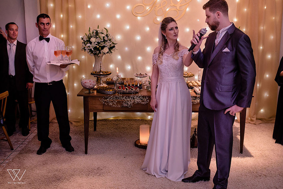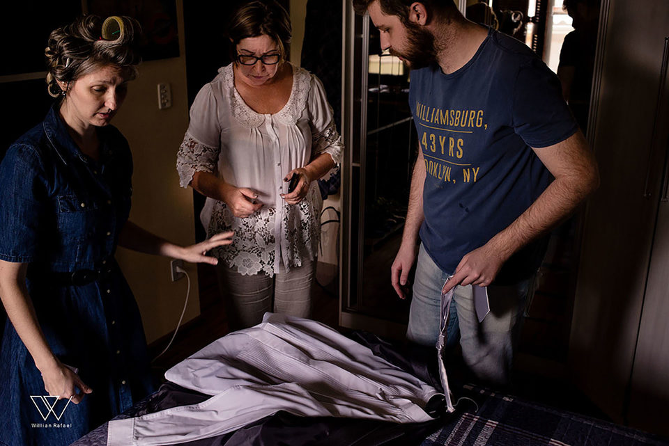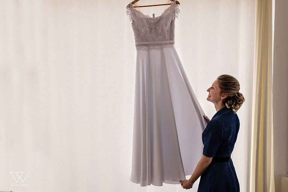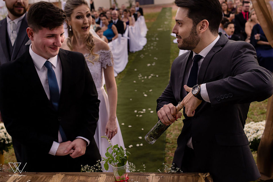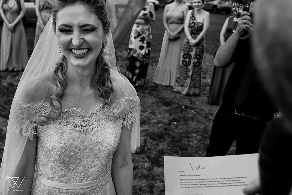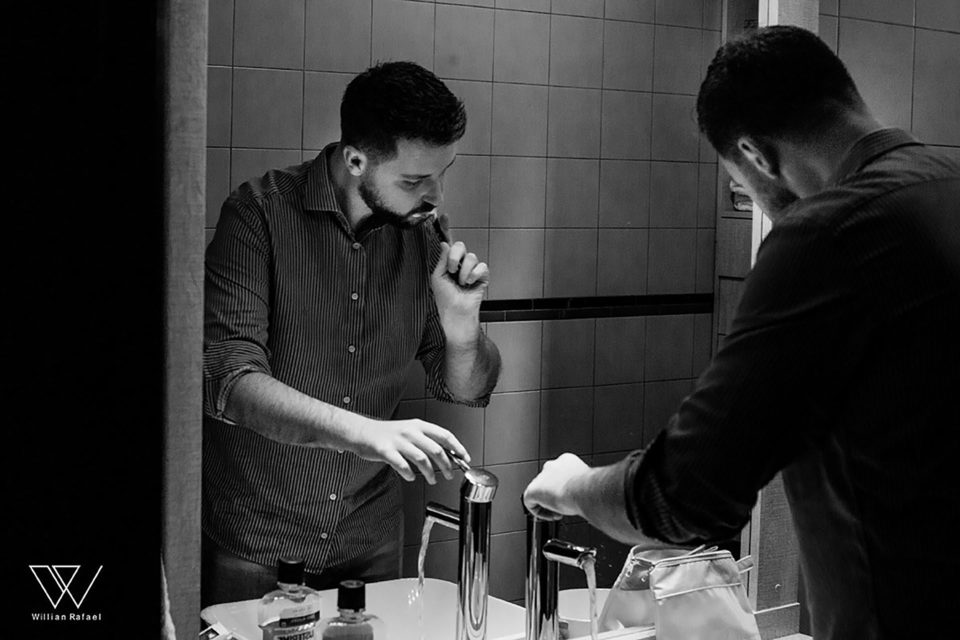 Geralmente no dia do casamento os noivos se separam vai um para cada lado, reza a lenda que da azar ver a noiva no dia do casamento, mas para este casamento foi tudo bem diferente. O Guilherme e a Fernanda planejaram todo o casamento juntos , sempre um ao lado do outro e não era por uma superstição que eles iriam se separar no dia mais importante da história deles. O Gui ficou com ela o dia todo, apenas na hora de colocar o vestido que ele se despediu, afinal olhar o vestido antes não seria justo!