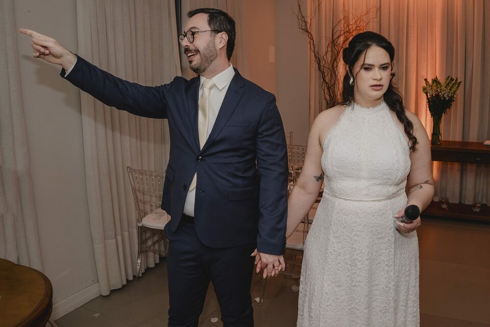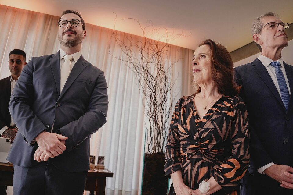 O grande destaque foi a celebração conduzida pelo irmão da noiva, que trouxe um toque ainda mais especial a essa cerimônia ao ar livre. O ambiente calmo, a luz suave e cada sorriso do casal tornaram o dia ideal para registrar cada detalhe em um estilo de fotografia de casamento minimalista e elegante.
