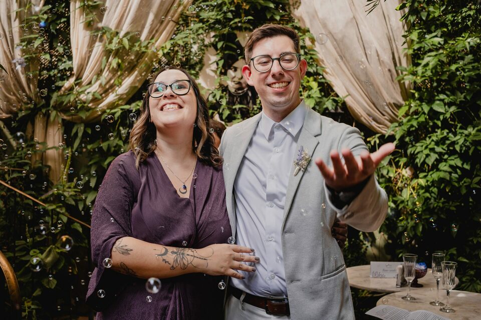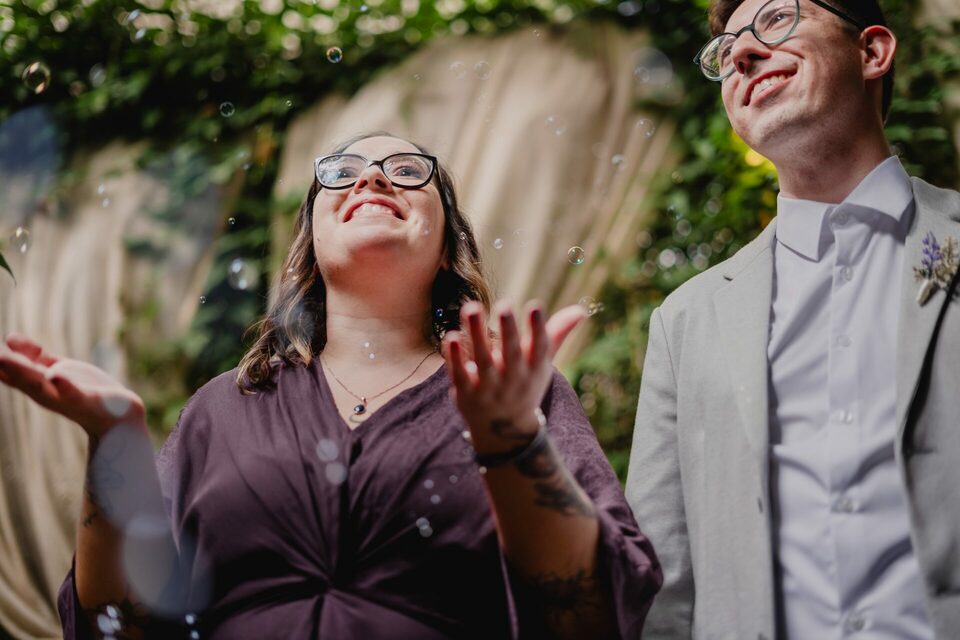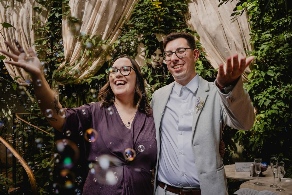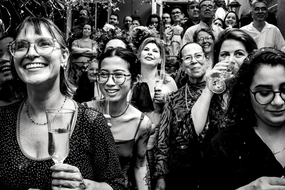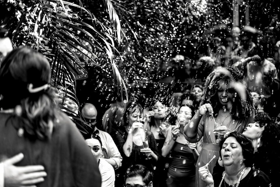 Durante os votos emocionantes, uma verdadeira chuva de bolhas de sabão tomou conta do salão, arrancando sorrisos e lágrimas dos convidados. Um momento mágico, espontâneo e cheio de energia boa — daqueles que a gente tem o privilégio de eternizar com a lente e o coração.