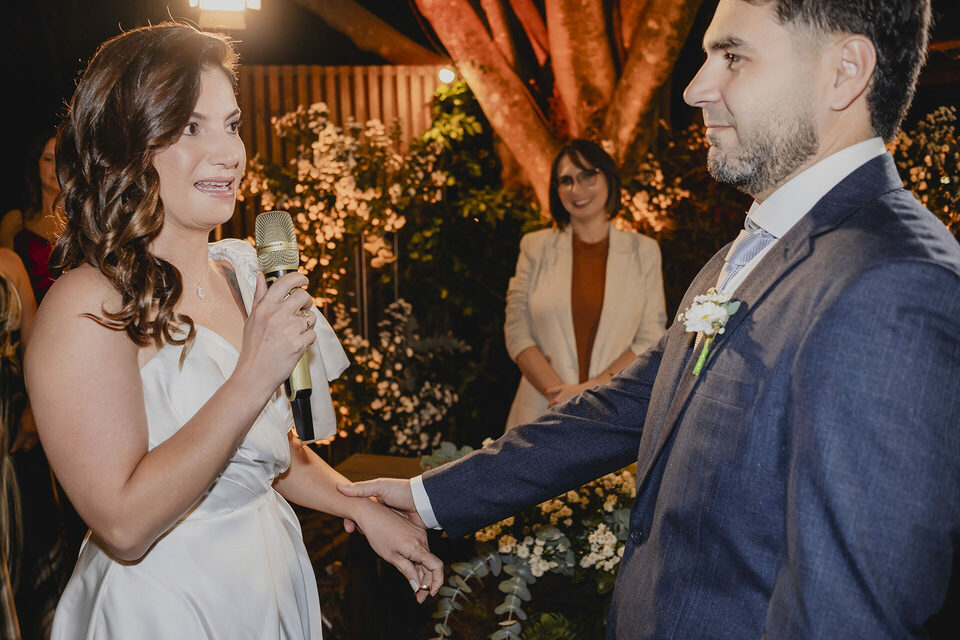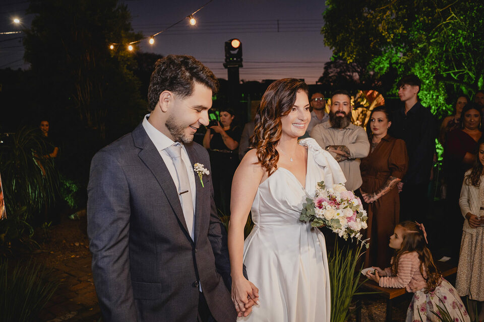 Com uma atmosfera acolhedora e cheia de sentimento, o casal trocou votos personalizados em um dos lugares mais charmosos para quem deseja um casamento com identidade própria. Foi um evento com a cara deles: leve, íntimo e profundamente emocionante.