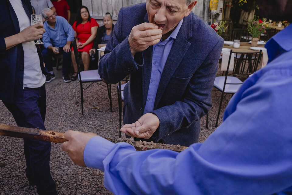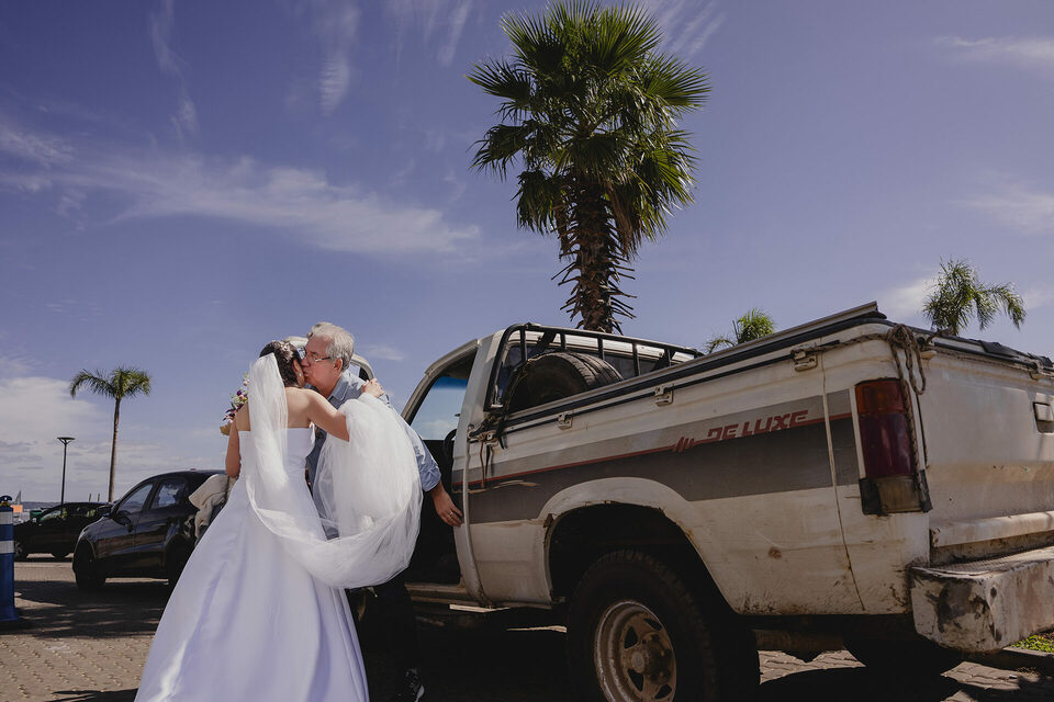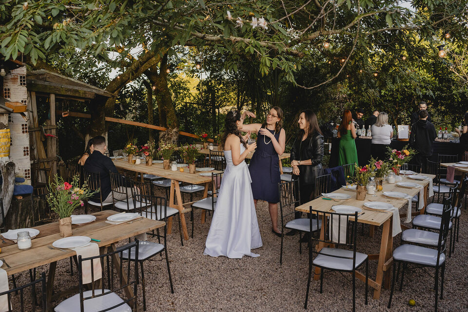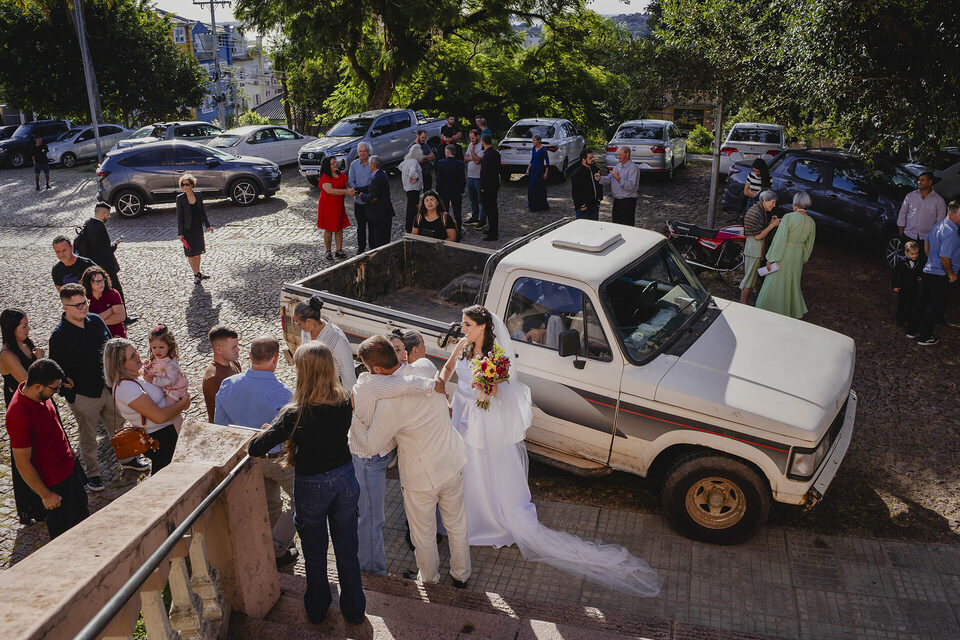 Como fotógrafo de casamento em Porto Alegre, tive o privilégio de testemunhar cada detalhe desse dia único. A recepção do casamento foi ainda mais íntima e emocionante: feita na própria casa do casal, no interior de Porto Alegre, com cada elemento pensado com carinho pelos dois. A decoração, os detalhes rústicos, o clima familiar e a alegria compartilhada com os convidados mostraram que a simplicidade, quando feita com amor, é capaz de criar momentos inesquecíveis.