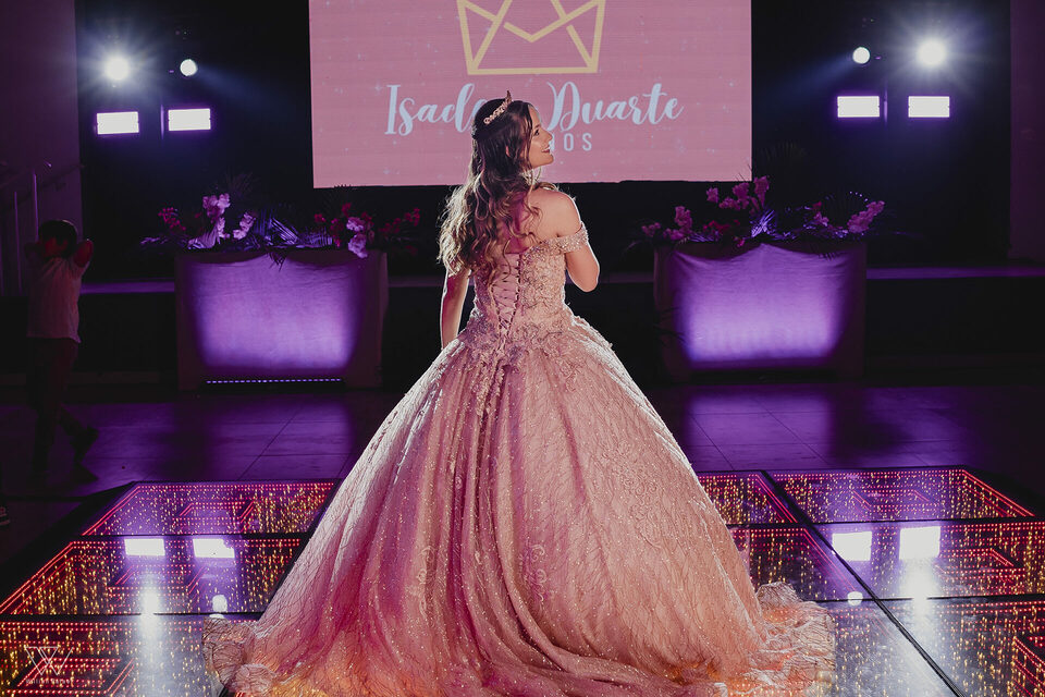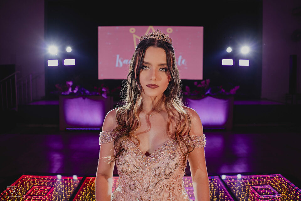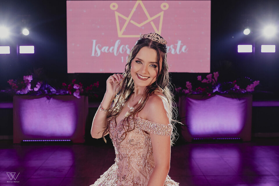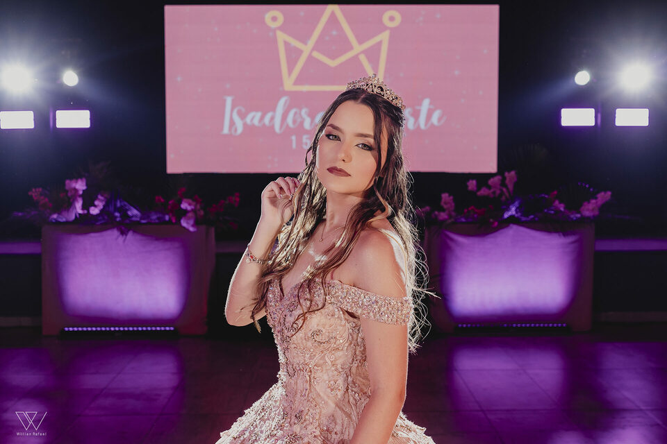 A festa de quinze anos da Isadora foi um verdadeiro espetáculo de emoção e beleza, celebrada com grande estilo no Clube Tiradentes, em Charqueadas. Cada detalhe da noite foi pensado para tornar esse momento inesquecível, e o grande destaque foi a debutante, que brilhou em um vestido deslumbrante, rodado e repleto de pedras, que cintilavam a cada passo, fazendo dela a estrela da noite.
