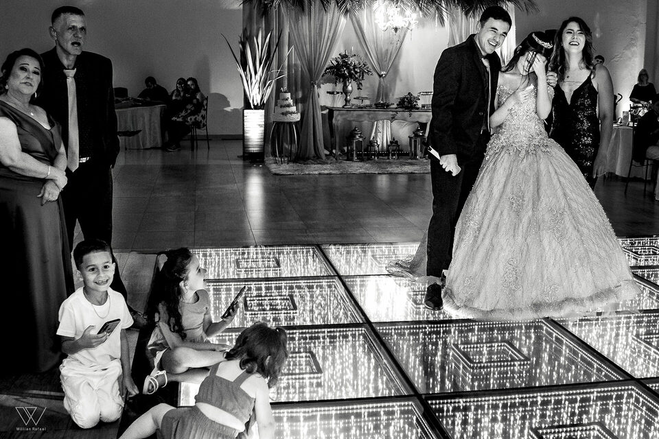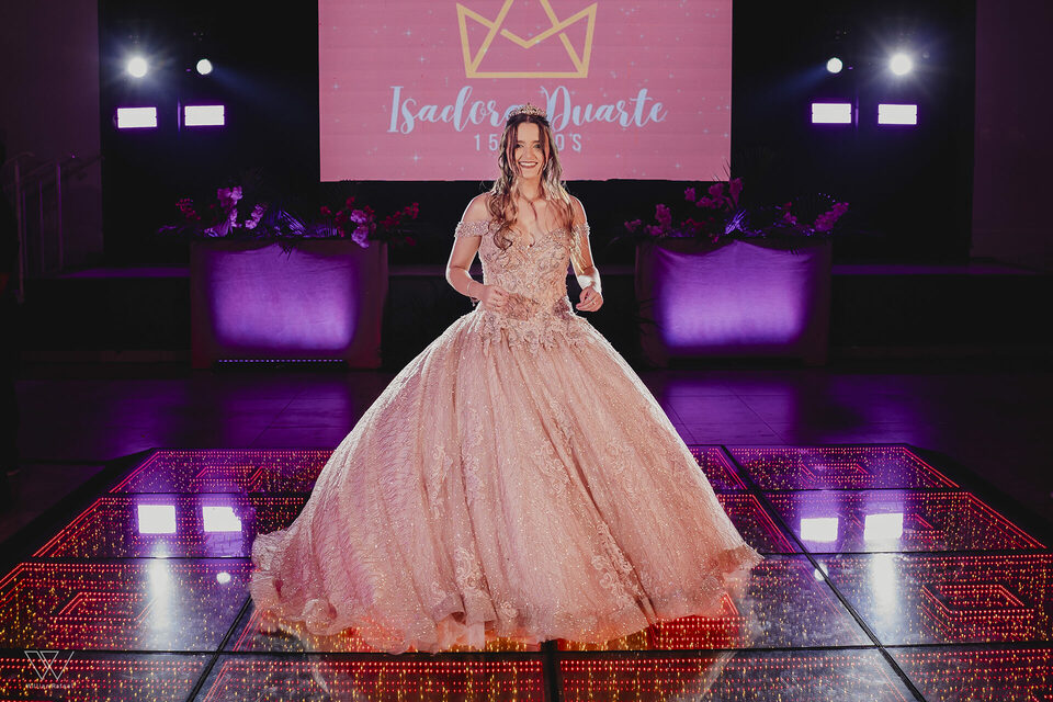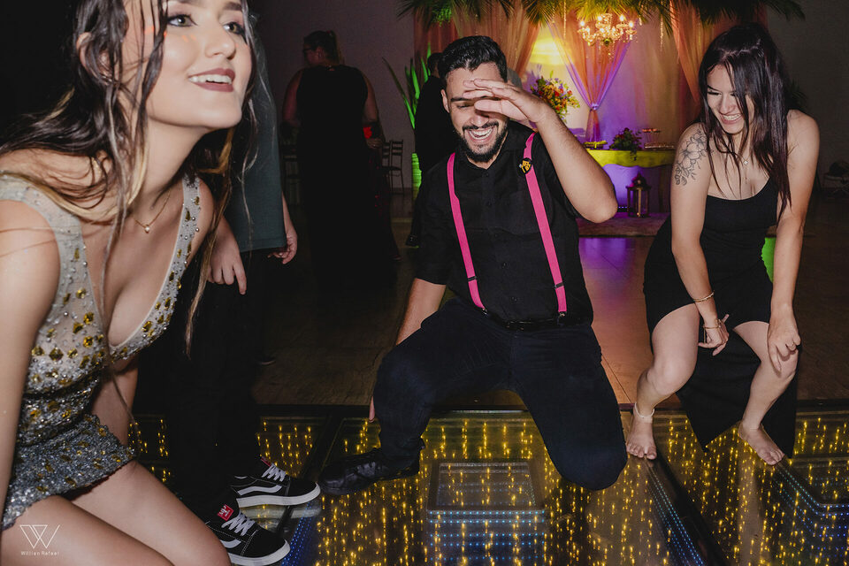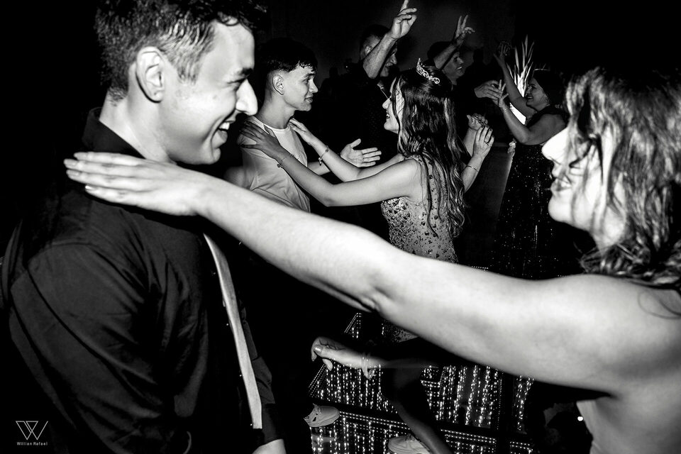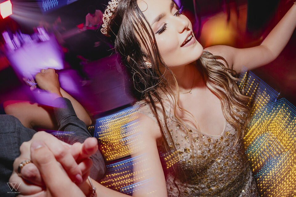 Mas a noite não foi feita apenas de emoção – também teve muita animação! Os convidados aproveitaram a pista de dança e celebraram esse momento especial até o amanhecer. O brilho do vestido da Isadora, somado ao brilho nos olhos de sua família e amigos, tornaram essa festa ainda mais inesquecível.