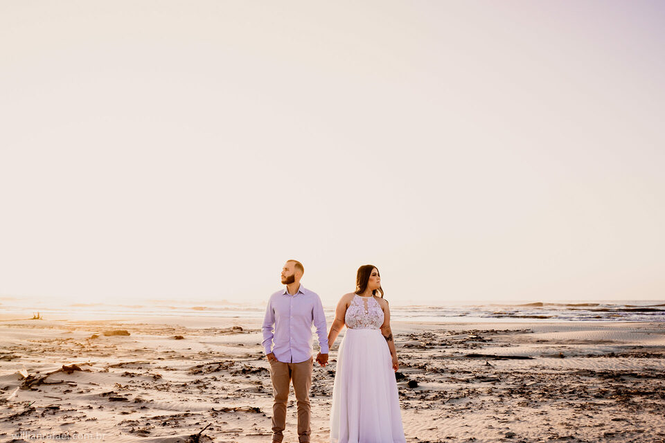 Fotos de pré wedding ao amanhecer na praia de Torres - RS, Ensaio da Gaby e do Léo