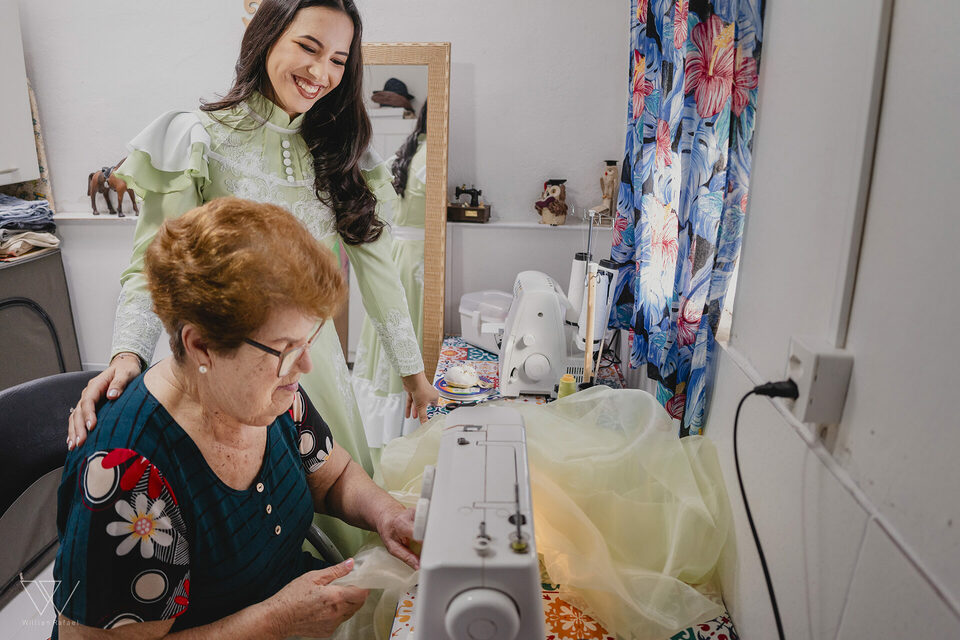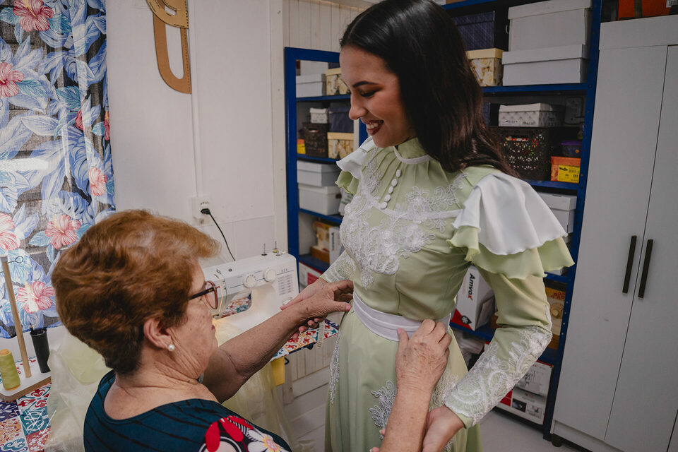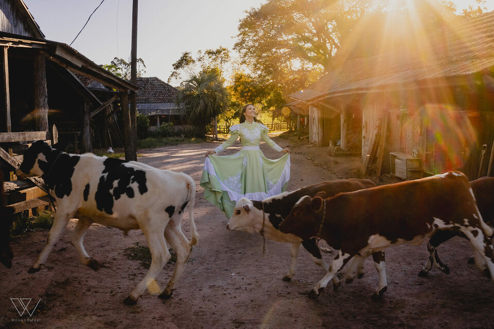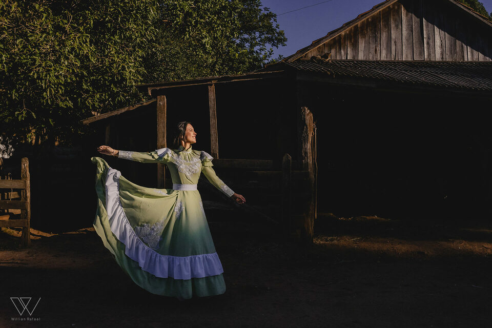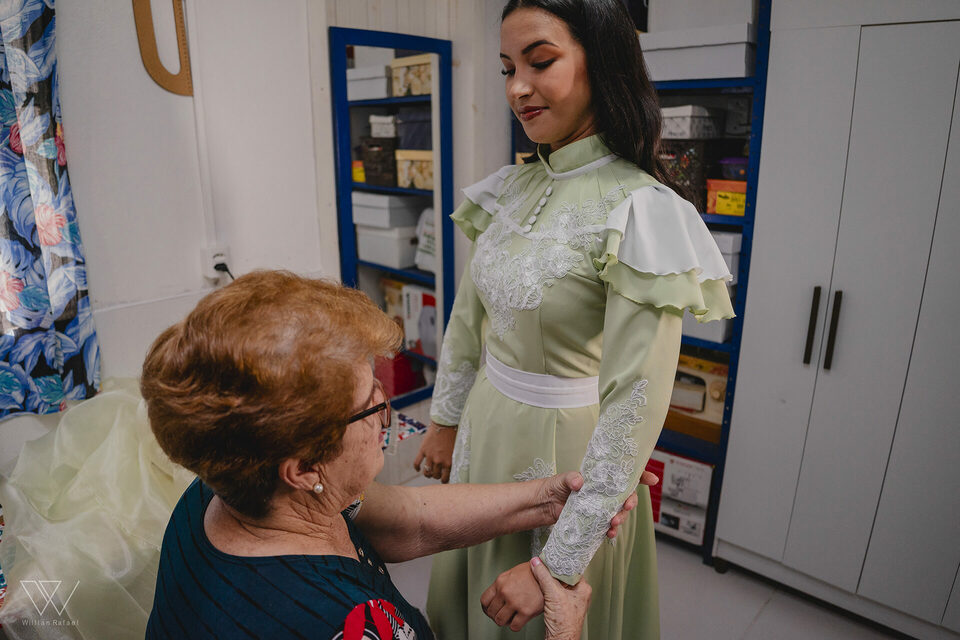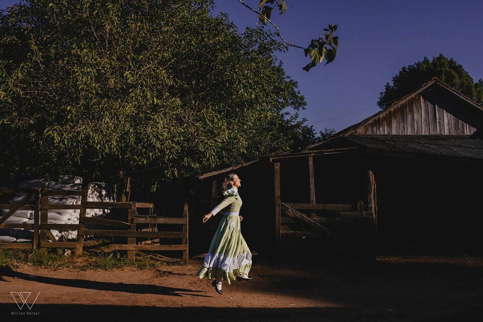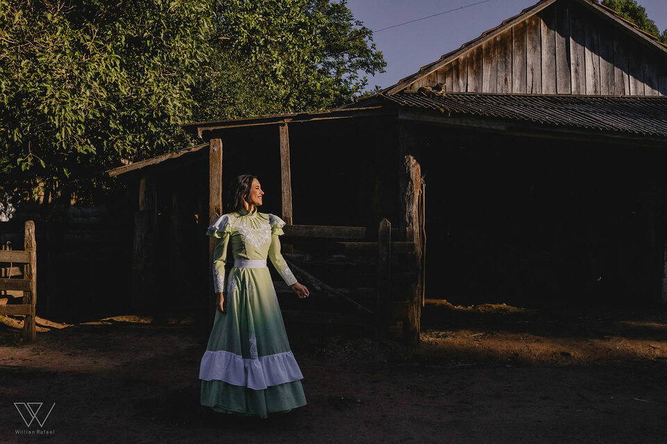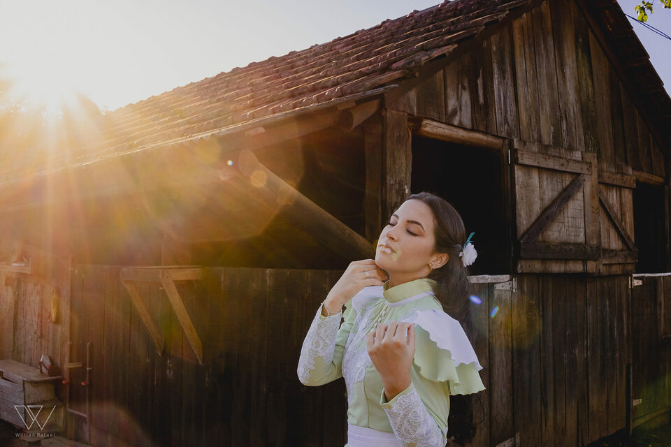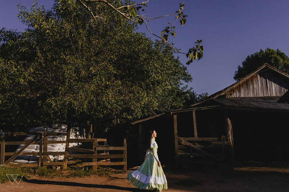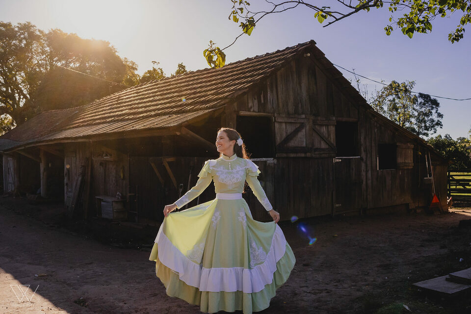 Vestida com um deslumbrante traje de prenda, meticulosamente confeccionado pela sua querida avó, Paula honrou suas raízes e tradições familiares. Cada detalhe do traje, desde os bordados delicados até os acessórios tradicionais, refletia a rica cultura gaúcha e o orgulho de sua herança.