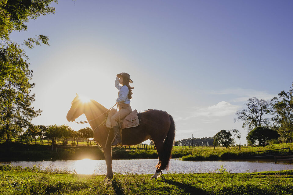 Mas a jornada de Paula não parou por aí. Em seguida, nos dirigimos à Cabanha do pai dela, o local que ela tanto ama e que representa a essência de sua infância e suas memórias mais preciosas. Entre os campos verdejantes e os estábulos acolhedores, Paula encontrou paz e serenidade, rodeada pelo amor e apoio de sua família.