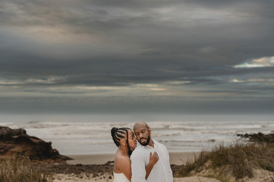 O pré-casamento na Praia da Guarita em Torres da Gaby e do Hermes foi daqueles momentos que mostram como a natureza é cenário perfeito para o amor. O ensaio aconteceu no amanhecer em Torres/RS, e mesmo sem o nascer do sol, a energia e o brilho vieram do casal, que se conectou de forma única com o mar, a areia e o vento suave.