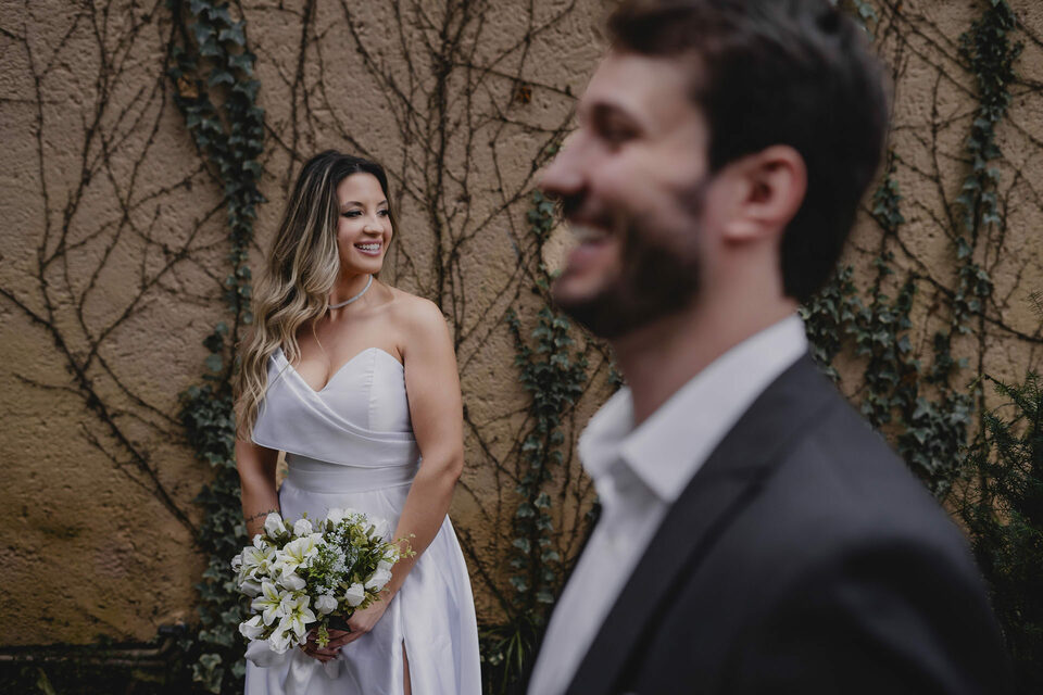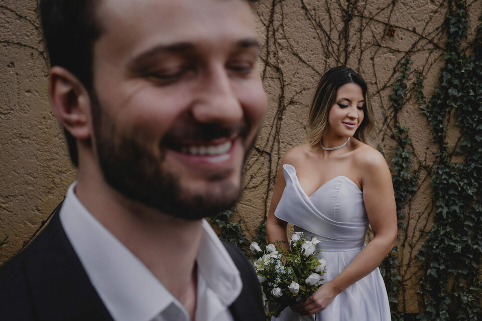 Na primeira parte do ensaio, os noivos optaram por trajes clássicos, que trouxeram ainda mais elegância para as fotos. Cada detalhe, cada olhar e cada sorriso revelavam a essência de um casal apaixonado, vivendo intensamente cada segundo desse momento especial.