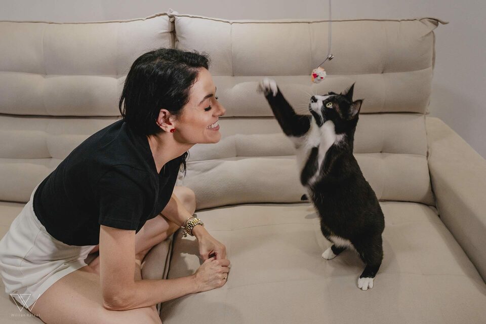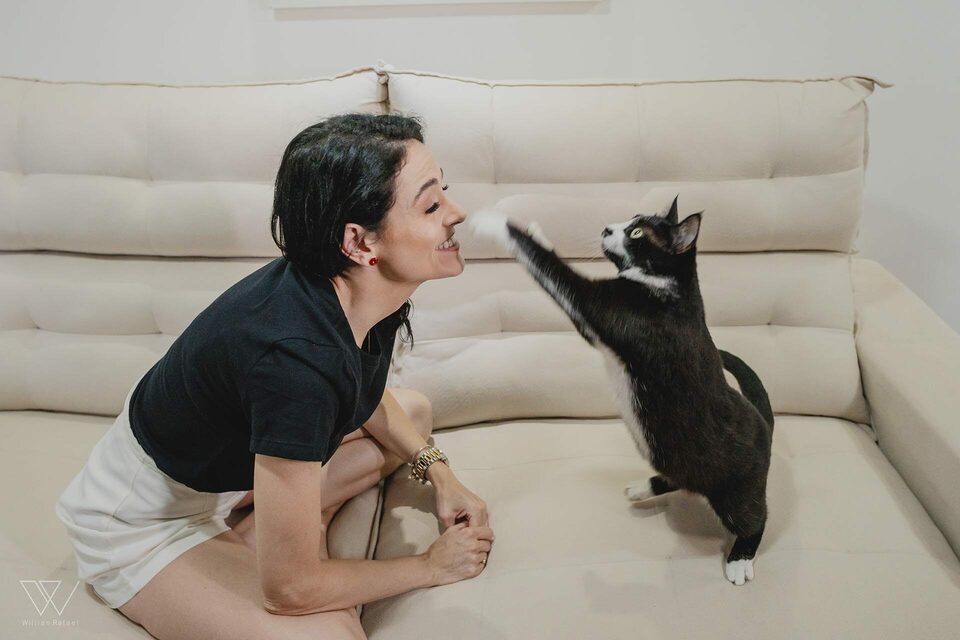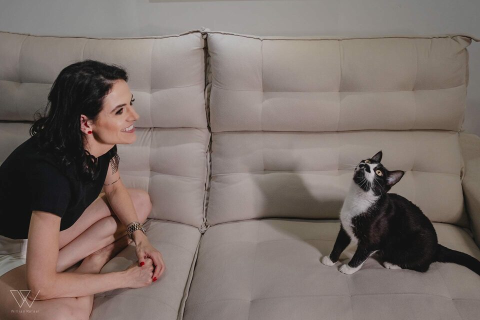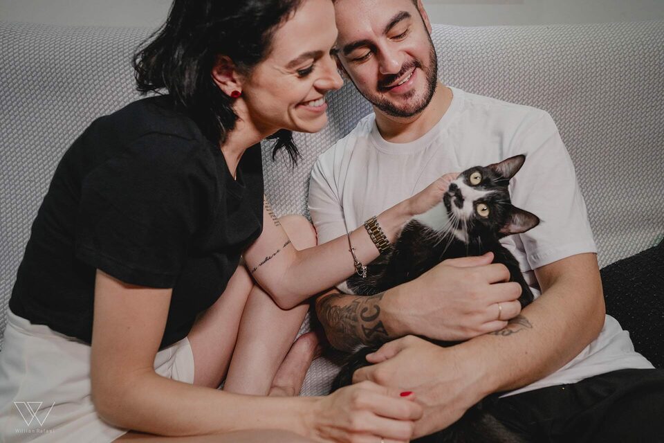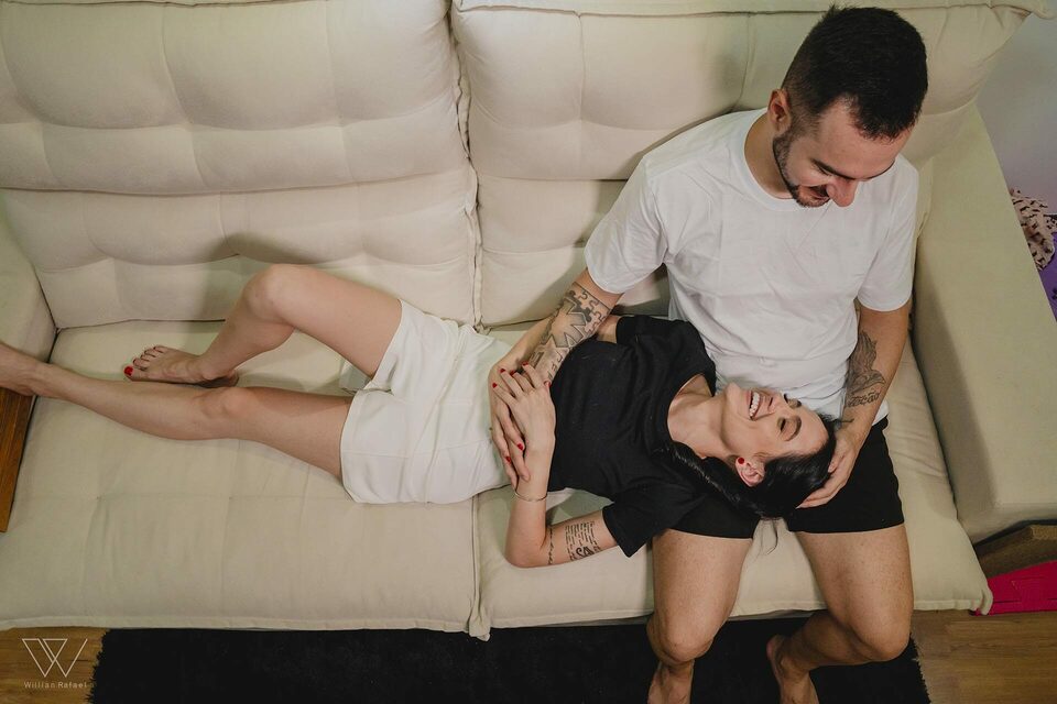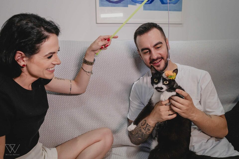 Mas não para por aí! O segundo capítulo dessa jornada de amor nos leva ao aconchego do lar, à doce atmosfera da casa que Magali e Leo chamam de lar. Entre risos, abraços e o ronronar da gatinha Vilma, que não perdeu a oportunidade de participar do ensaio, eles construíram um ninho de amor onde cada detalhe conta a história de sua cumplicidade e afeto.